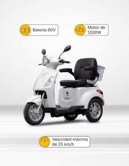 Equipada con un motor de 1200W, alcanza una velocidad máxima de 25 km/h y ofrece una conducción suave y segura.